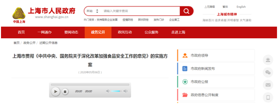5 월 6 일 상하이 시 정부는 "CCP 중앙, 국무원의 개혁 심화 및 식품 안전 강화 사업" 시행방안을 발표했다 (이하 "프로그램"). 건강식품업계의 특별 청소개선 조치를 실시해 건강식품 사기와 허위 선전, 허위 광고, 소비자 권익 침해 등의 위법행위를 엄히 단속하는 방안을 내놓았다.
